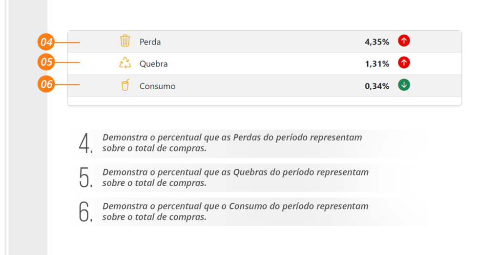 - % Perda: Exibe a média de perda lançada no estoque e comparando com a média de perda dos últimos meses.