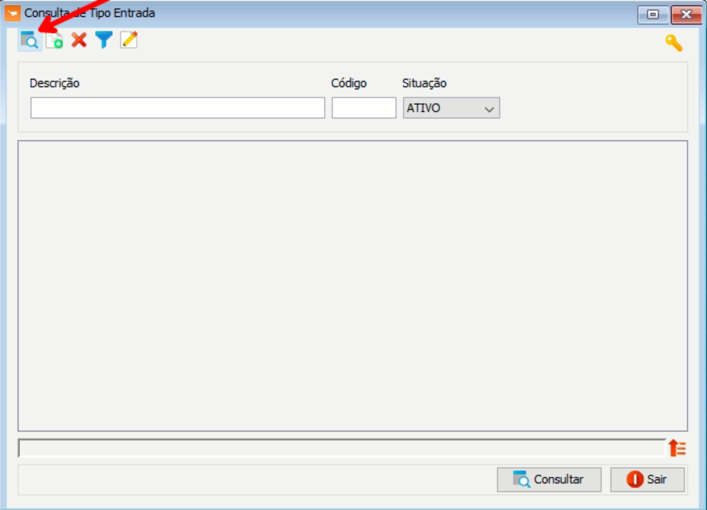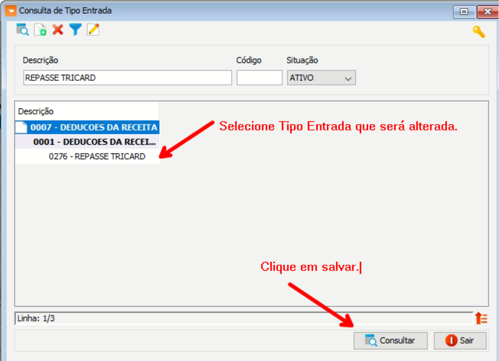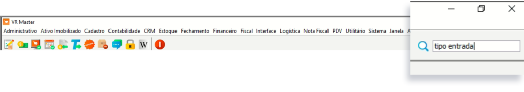 - Acesse o VR Master e click no campo onde está indicando a imagem abaixo, em seguida procure por “Tipo Entrada”;