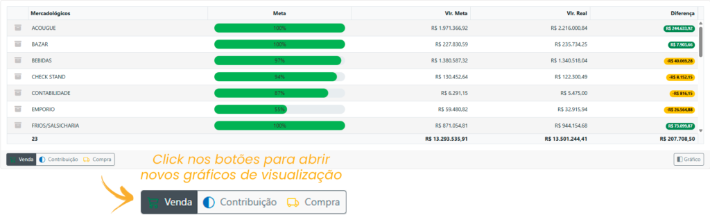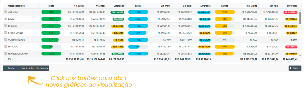 Agora é possível analisar tanto as metas de vendas por mercadológicos quanto as Contribuições e Compras;