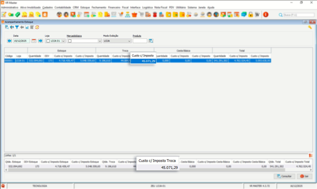2. Rotina para conferência dos dados dentro do VR Master: Estoque / Acompanhamento de Estoque